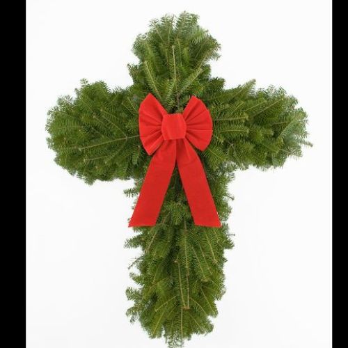 A roughly 32" cross wreath.